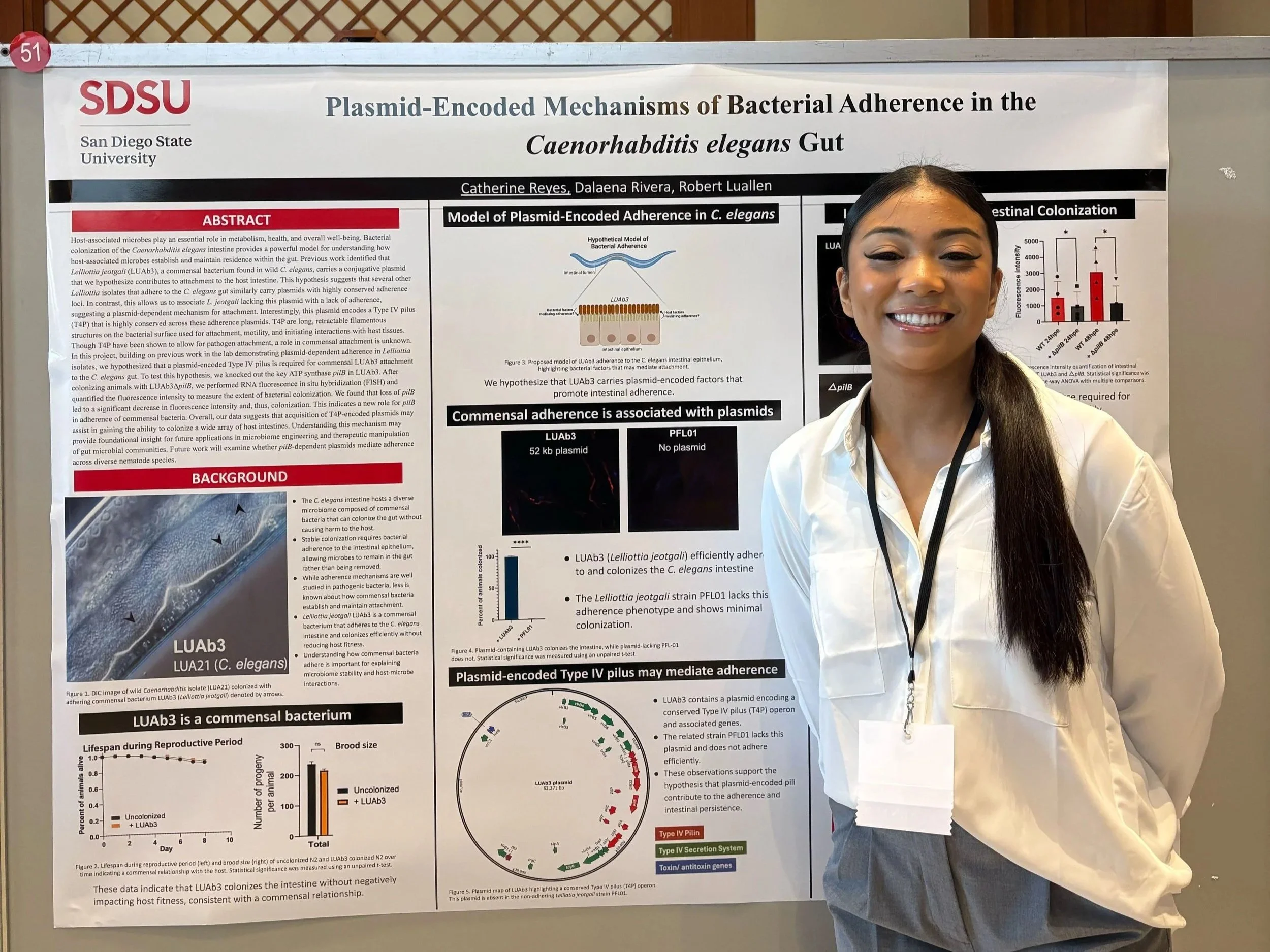 Catherine presents her poster on plasmid genes being required for microbiome bacterial adherence in vivo.